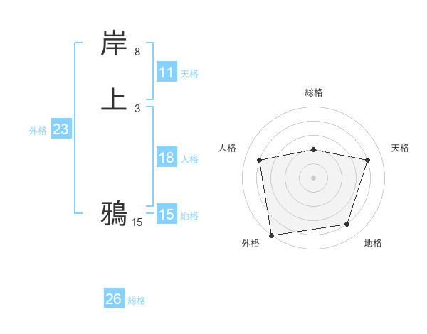 岸上 鴉さんの外格は23画の5点!