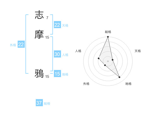 志摩 鴉さんの総格は37画の5点!