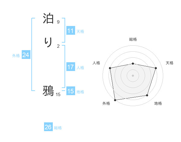 泊り 鴉さんを姓名の画数から五運を鑑定
