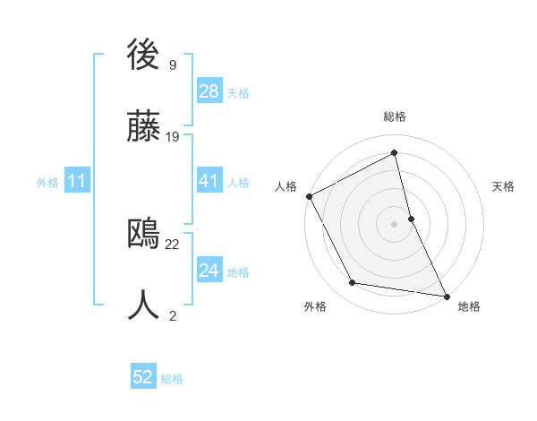 後藤 鴎人さんの総格は52画の4点!