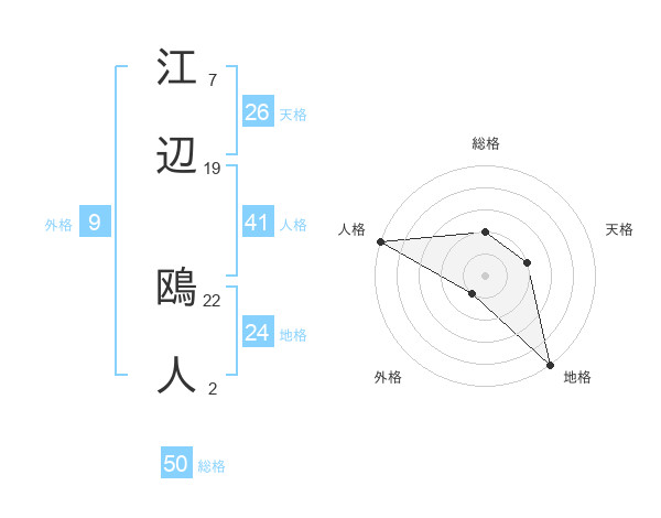 江辺 鴎人さんの総格は50画の2点!