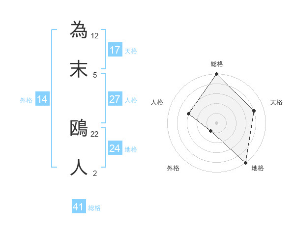為末 鴎人さんの天格は17画の4点!