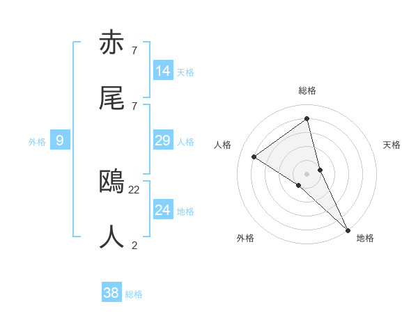 赤尾 鴎人さんを姓名の画数から五運を鑑定