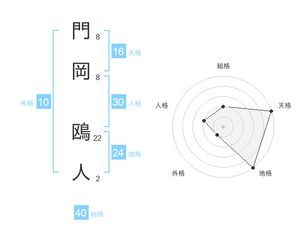 門岡 鴎人さんを姓名の画数から五運を鑑定