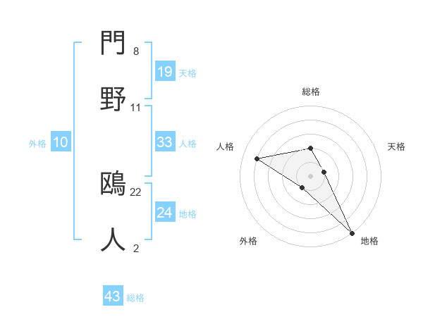 門野 鴎人さんを姓名の画数から五運を鑑定