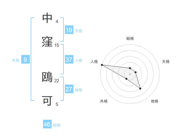 中窪 鴎可さんを姓名の画数から五運を鑑定