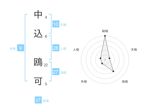 中込 鴎可さんの総格は37画の5点!