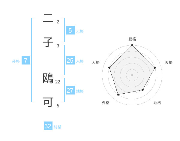二子 鴎可さんの総格は32画の5点!
