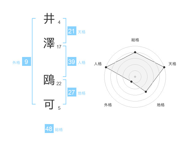 井澤 鴎可さんを姓名の画数から五運を鑑定