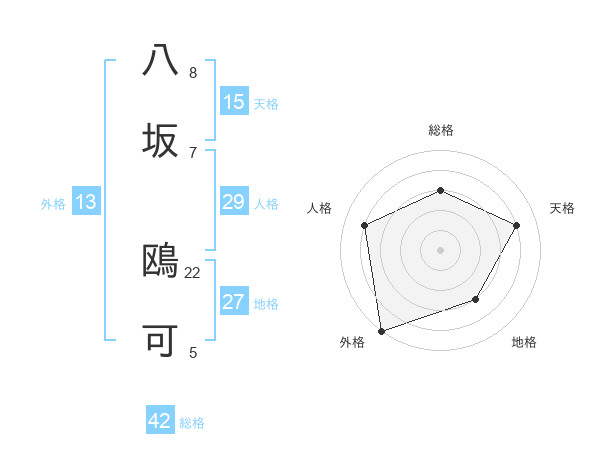 八坂 鴎可さんの総格は42画の3点!