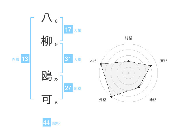 八柳 鴎可さんを姓名の画数から五運を鑑定
