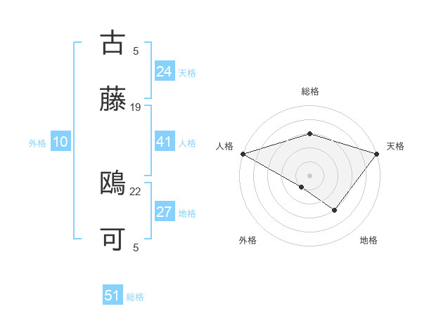 古藤 鴎可さんを姓名の画数から五運を鑑定