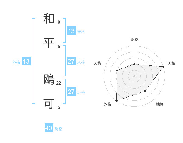 和平 鴎可さんの外格は13画の5点!