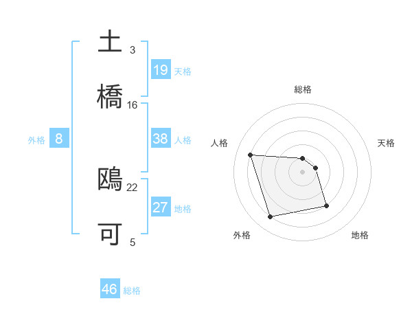 土橋 鴎可さんを姓名の画数から五運を鑑定