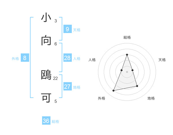 小向 鴎可さんの総格は36画の3点!