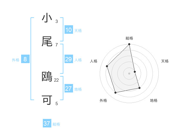 小尾 鴎可さんの総格は37画の5点!