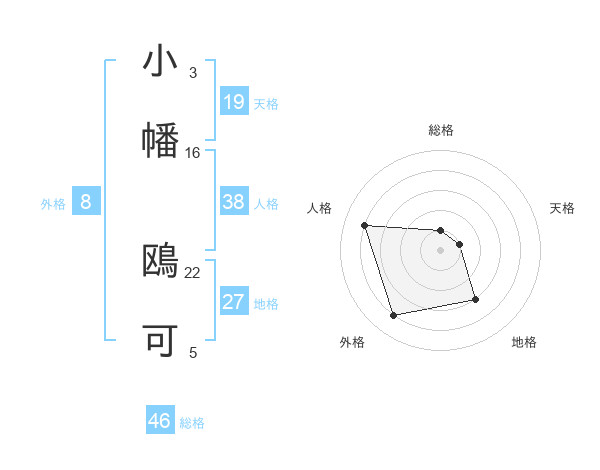 小幡 鴎可さんを姓名の画数から五運を鑑定