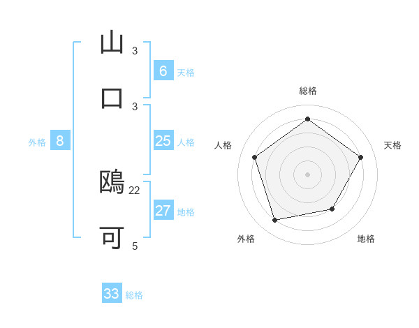 山口 鴎可さんを姓名の画数から五運を鑑定