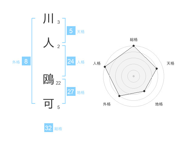 川人 鴎可さんの総格は32画の5点!