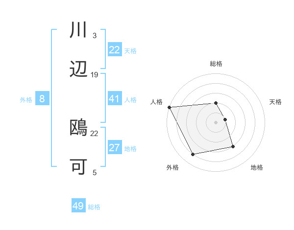 川辺 鴎可さんを姓名の画数から五運を鑑定