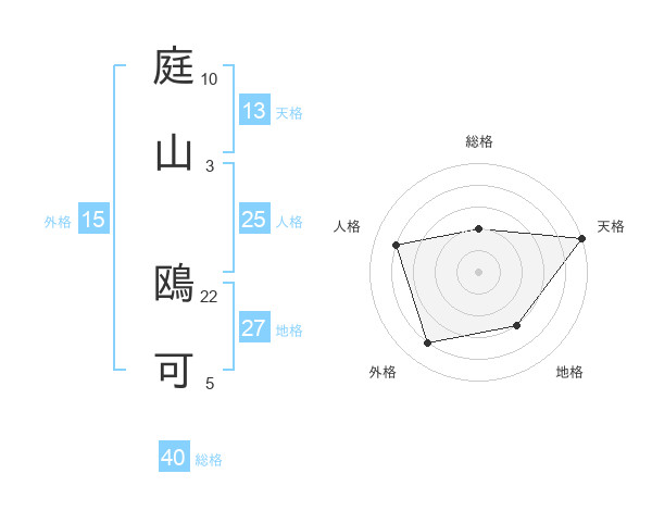 庭山 鴎可さんを姓名の画数から五運を鑑定