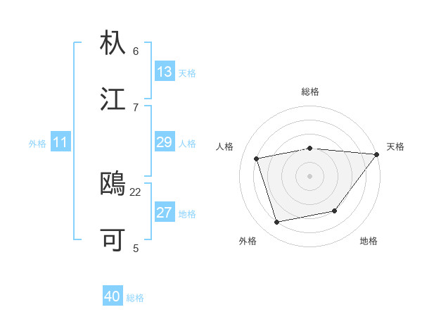 杁江 鴎可さんを姓名の画数から五運を鑑定