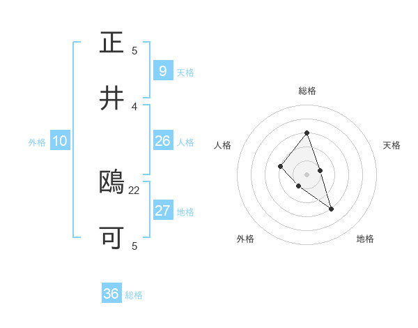 正井 鴎可さんを姓名の画数から五運を鑑定