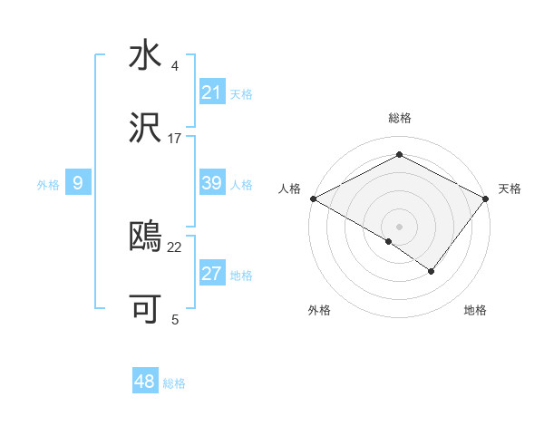 水沢 鴎可さんを姓名の画数から五運を鑑定