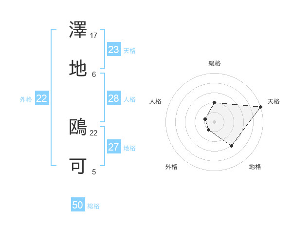 澤地 鴎可さんの総格は50画の2点!