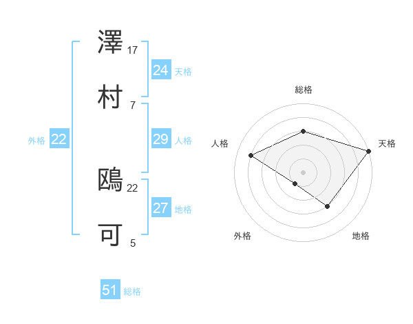 澤村 鴎可さんを姓名の画数から五運を鑑定