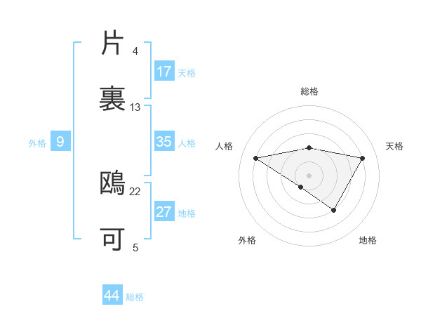 片裏 鴎可さんを姓名の画数から五運を鑑定