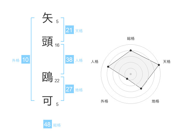 矢頭 鴎可さんの総格は48画の4点!
