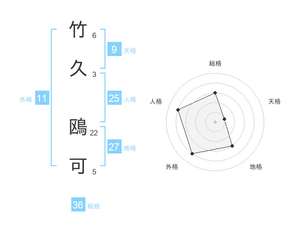 竹久 鴎可さんを姓名の画数から五運を鑑定