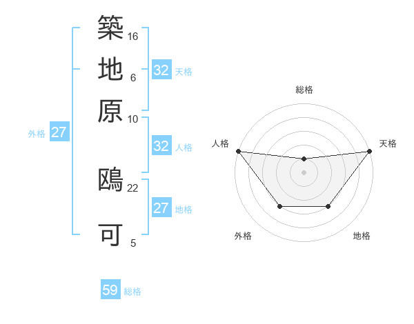 築地原 鴎可さんの総格は59画の1点!