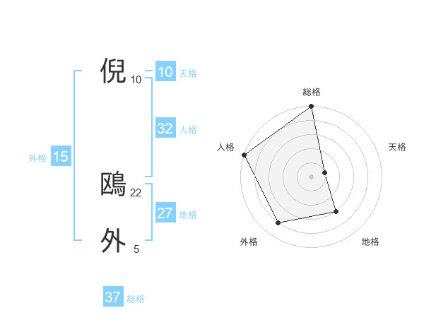 倪 鴎外さんの総格は37画の5点!