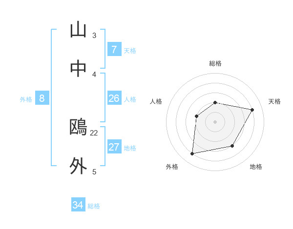山中 鴎外さんを姓名の画数から五運を鑑定