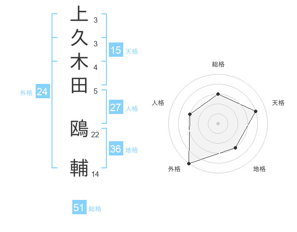 上久木田 鴎輔さんを姓名の画数から五運を鑑定