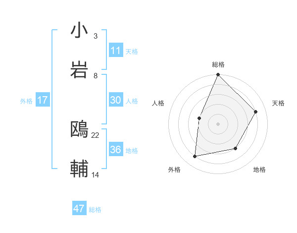 小岩 鴎輔さんを姓名の画数から五運を鑑定