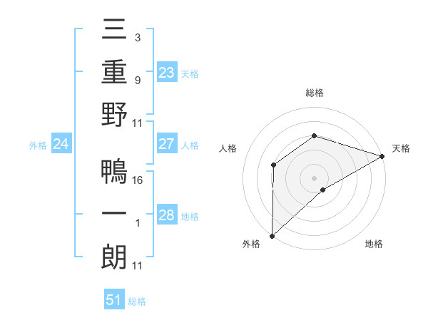 三重野 鴨一朗さんの総格は51画の3点!