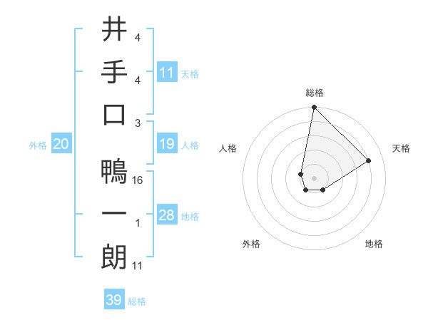 井手口 鴨一朗さんを姓名の画数から五運を鑑定