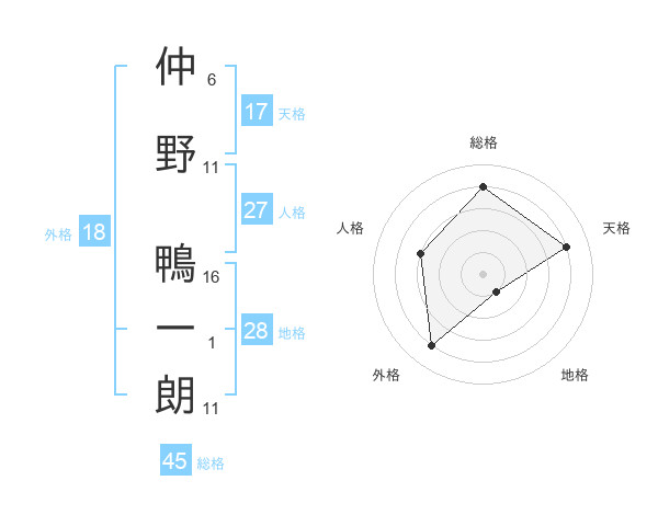 仲野 鴨一朗さんの天格は17画の4点!