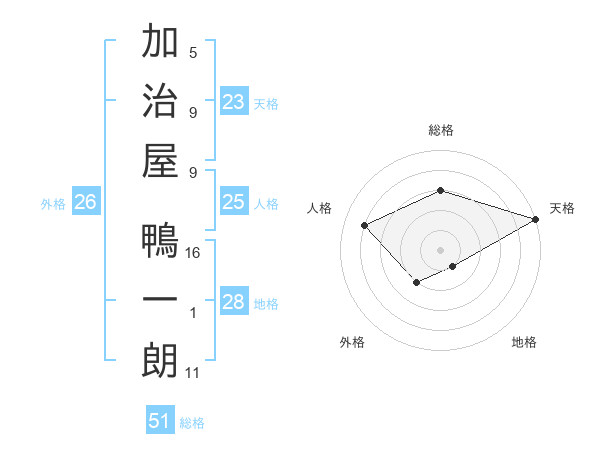 加治屋 鴨一朗さんの名前の鑑定結果は!