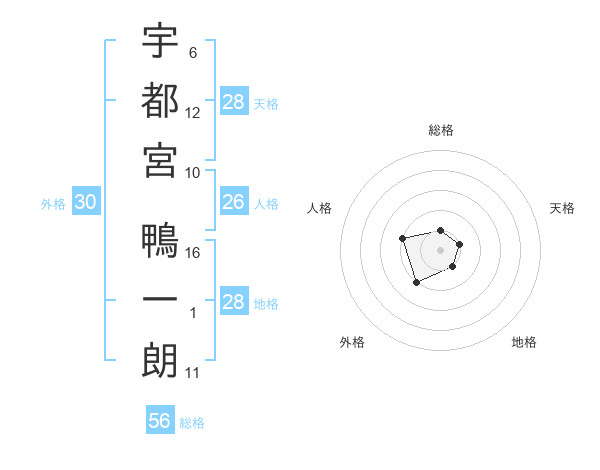 宇都宮 鴨一朗さんを姓名の画数から五運を鑑定
