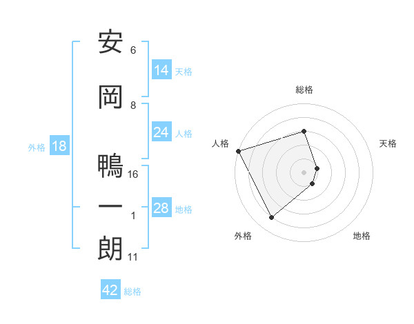 安岡 鴨一朗さんの総格は42画の3点!