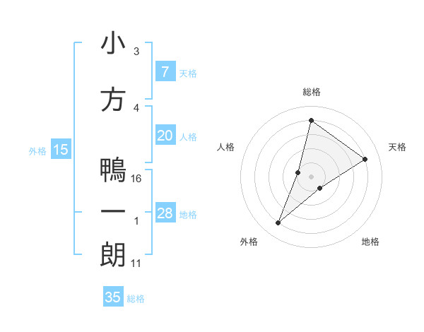 小方 鴨一朗さんを姓名の画数から五運を鑑定