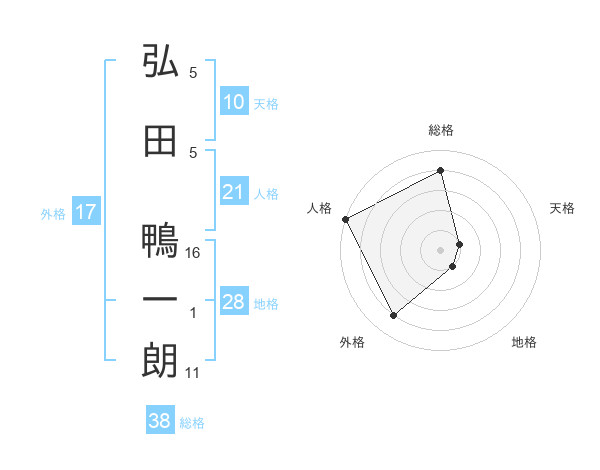 弘田 鴨一朗さんを姓名の画数から五運を鑑定