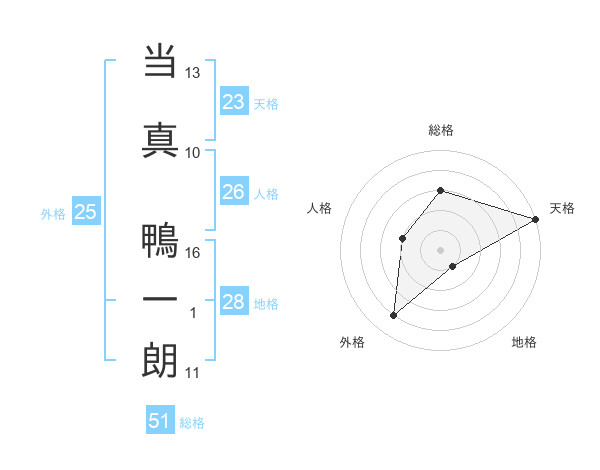 当真 鴨一朗さんの総格は51画の3点!