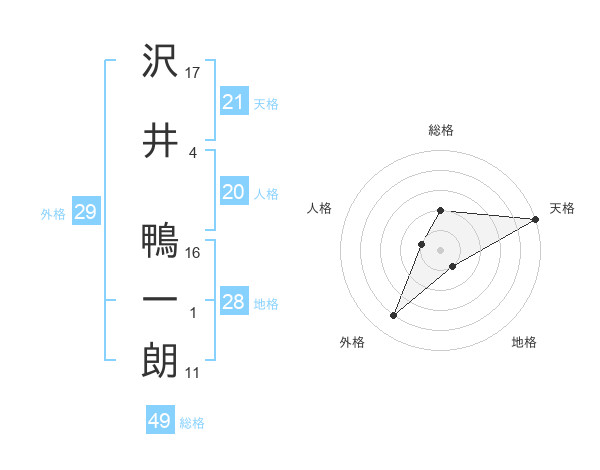 沢井 鴨一朗さんを姓名の画数から五運を鑑定