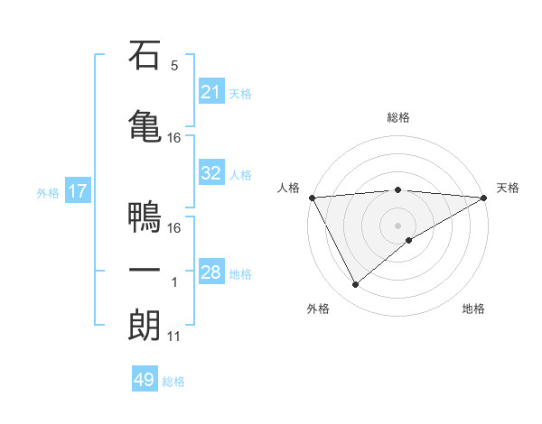 石亀 鴨一朗さんを姓名の画数から五運を鑑定
