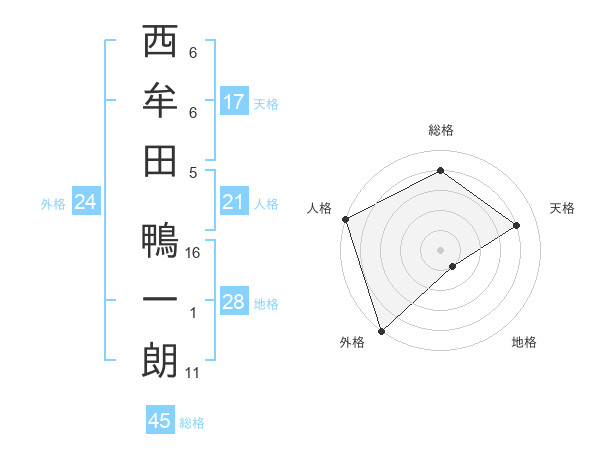 西牟田 鴨一朗さんを姓名の画数から五運を鑑定